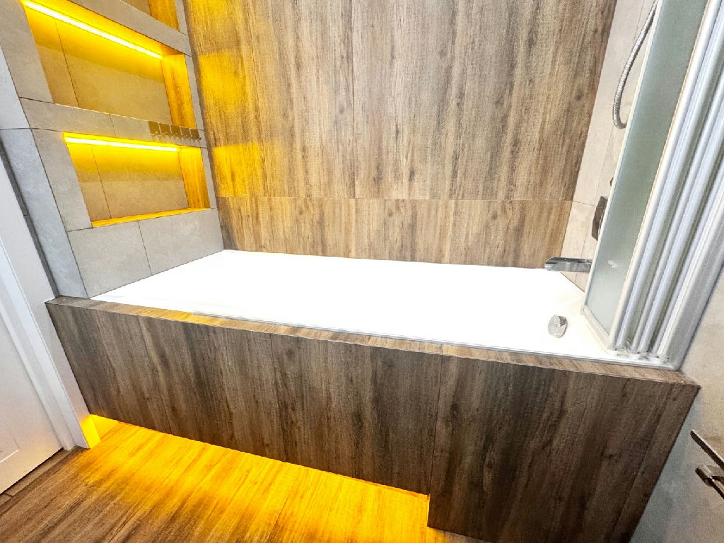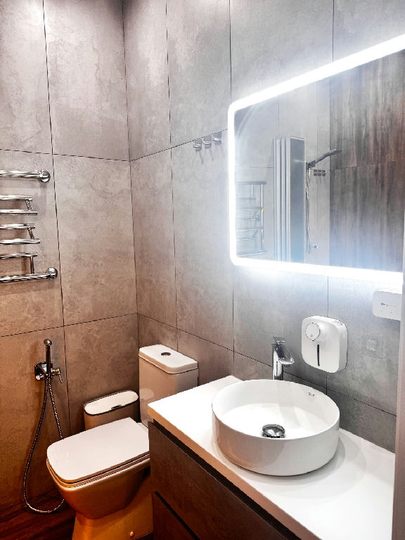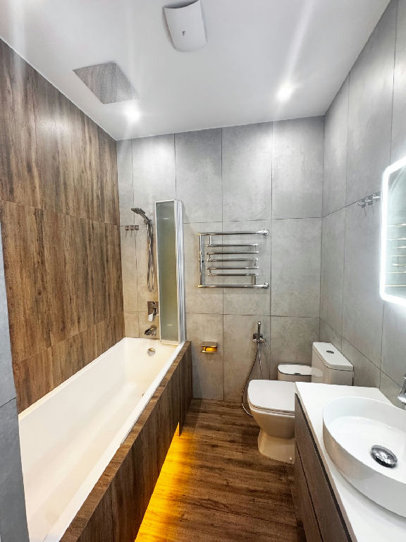 - Ремонт выполнен качественно, стены выравнивались под покраску, керамогранит, продуманное освещение, 60+ точек.