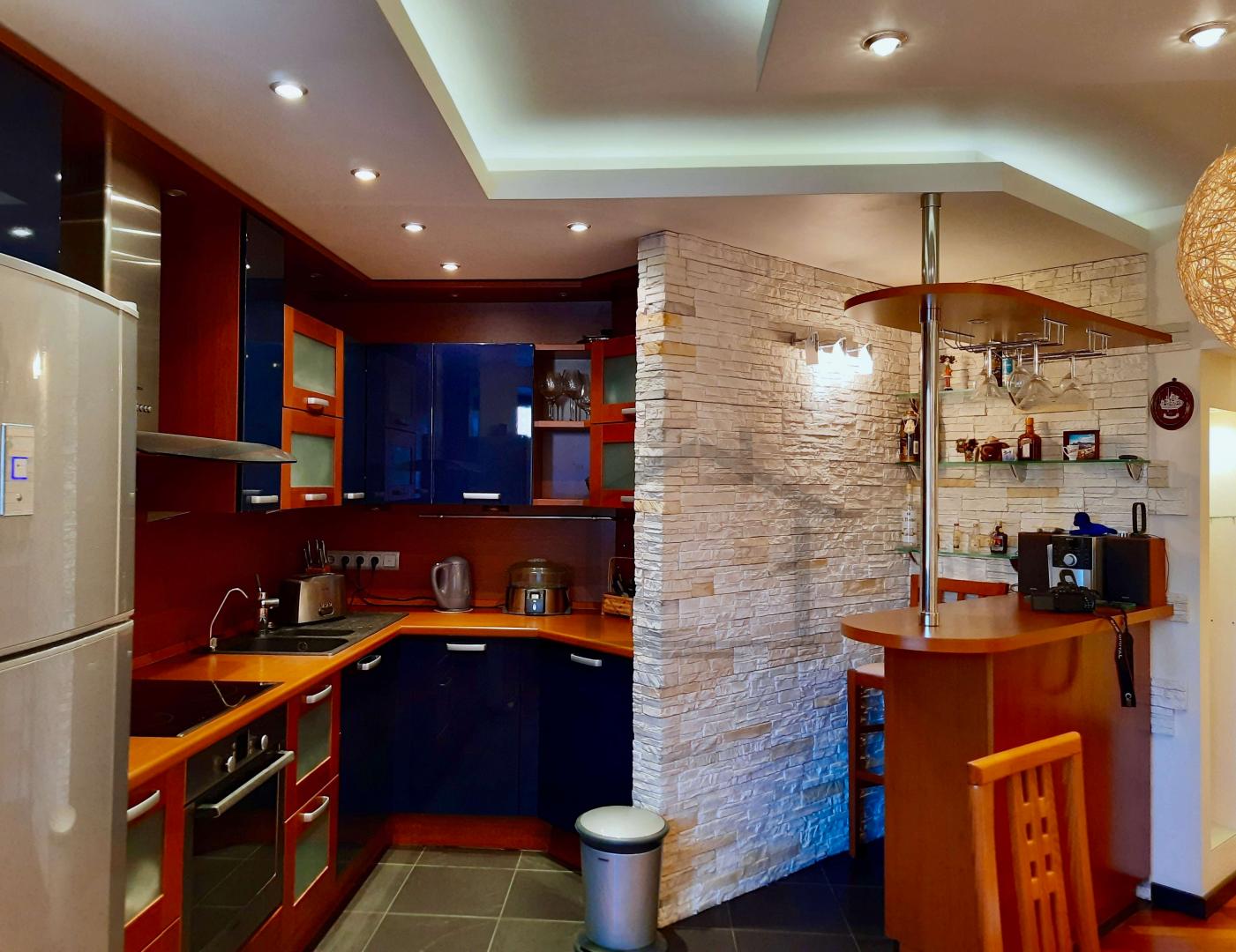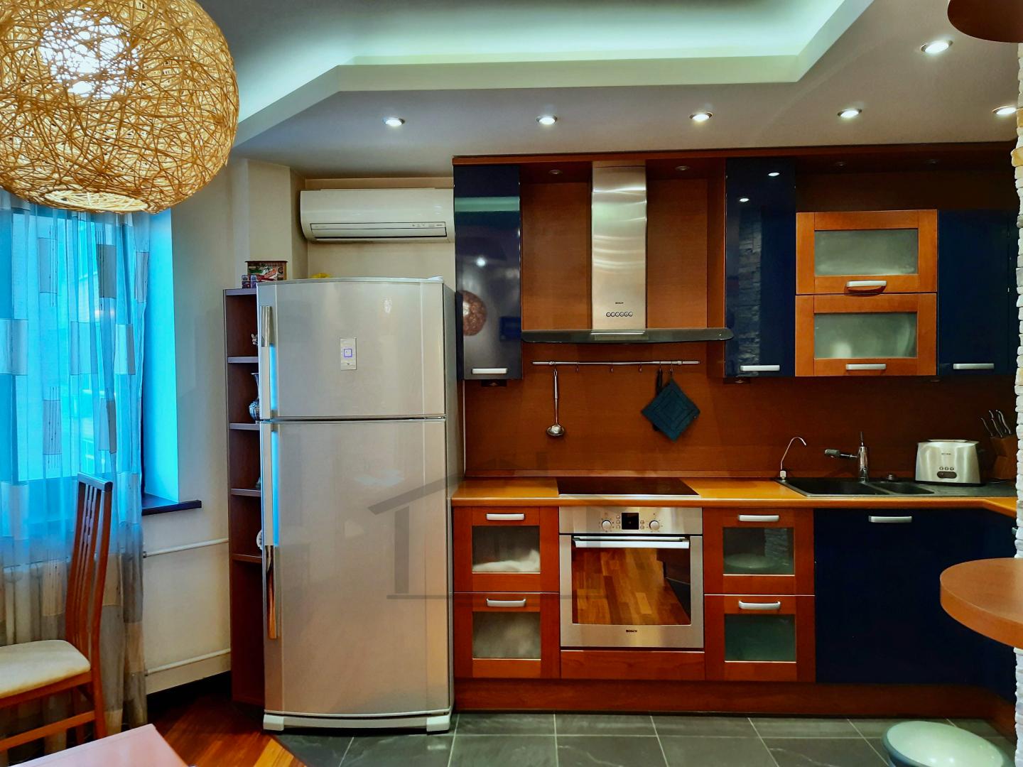 Кухня : Доймo (Италия), посудомоечная машина марки: Bosh, стиральная машина марки: Miele, варочная панель: Bosh, духовой шкаф: Bosh, диван Kalinka.
