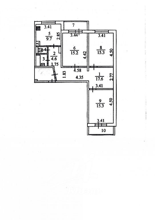 Комнаты: 15.2 15.3 15.3 м2